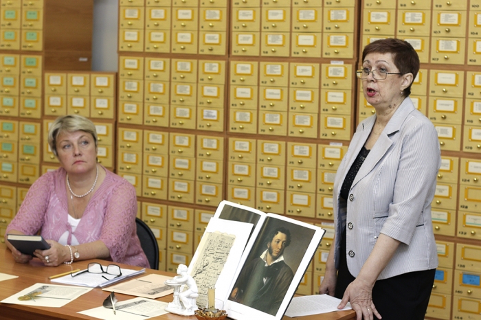 В свой профессиональный праздник, 27 мая, Научно-техническая библиотека КнАГУ пригласила читателей на литературно-художественное мероприятие «Идут века, но Пушкин остаётся», гостями которого стали студенты социально-гуманитарного и самолётостроительного факультетов, слушатели подготовительного отделения.
