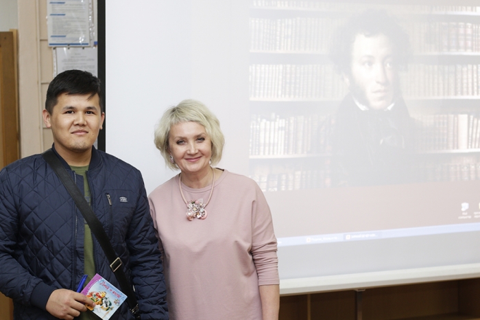 В преддверии 220-летия со дня рождения великого русского поэта и Дня русского языка, которые отмечаются 6 июня, участникам мероприятия было предложено вспомнить бессмертные пушкинские строки, соприкоснуться с творчеством замечательного поэта. Собравшиеся узнали много интересных фактов о жизни и творчестве поэта, его личности и литературных предпочтениях. Рассказ ведущих сопровождался чтением стихотворений, посвящённых жене А. С. Пушкина – Наталье Гончаровой, его друзьям и его няне – Арине Родионовне… Студенты с интересом знакомились с эпистолярным наследием гения русской литературы, а иностранные студенты с удовольствием говорили на «языке Пушкина», декламируя его замечательные произведения. Старательно выговаривая непривычные звуки, они боялись сбиться с ритма и ошибиться. Но их поддерживали аплодисментами друзья и зрители, а наиболее активному чтецу, Курманбеку Тологонову, был вручён памятный сувенир.
