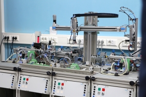 Во второй лаборатории промышленной автоматики представлено оборудование, позволяющее изучить принципы работы и основы проектирования автоматизированных систем, начиная с изучения отдельных элементов (пневматика, гидравлика, датчики, контроллеры и т. д.) и заканчивая построением сложных систем управления крупными производственными линиями.