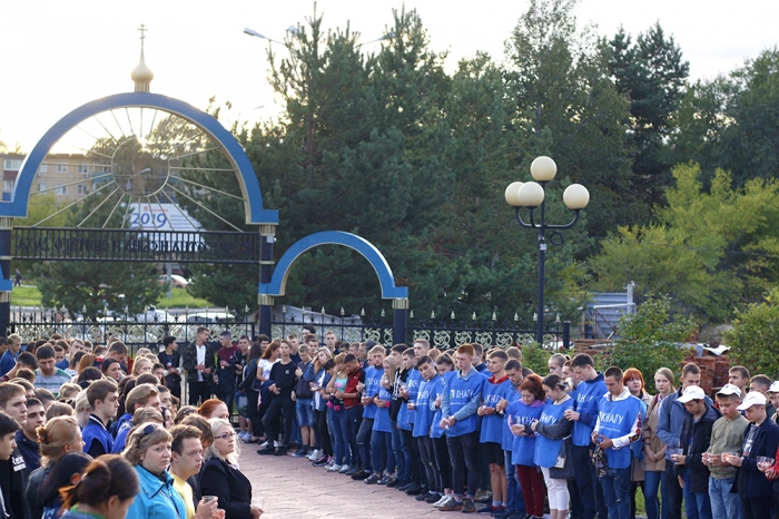 На мероприятии присутствовали представители администрации города, русской православной церкви, воспитанники военно-патриотических клубов, студенты, школьники, молодёжь города. В рамках акции для всех присутствующих отец Алексей провел молитву в память о погибших. Далее студенты Комсомольского-на-Амуре государственного университета совместно с другими участниками молодёжной акции «Нет террору!» сложили слово «МИР» из поминальных свечей в память о тех, кто погиб от рук террористов.