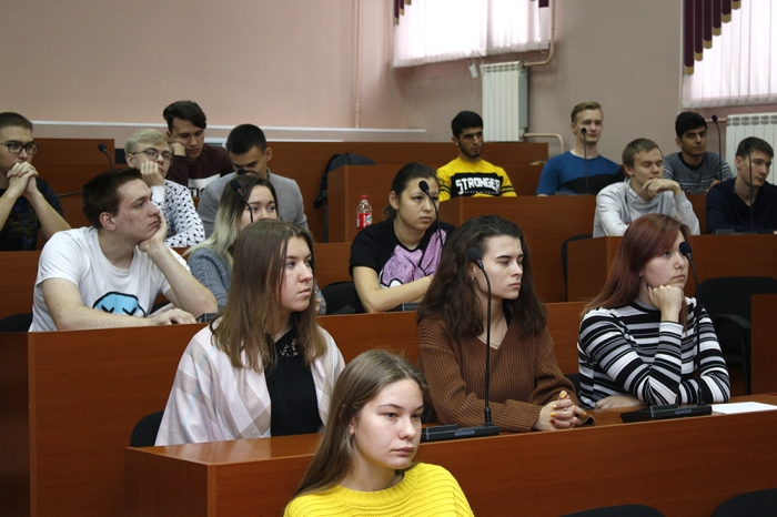 30 октября 2019 г. в Комсомольском-на-Амуре государственном университете состоялась очередная встреча в рамках проекта дискуссионных студенческих клубов «Диалог на равных». Этот проект направлен на то, чтобы показать студентам на примере успешных и известных людей, что современная Россия – это страна возможностей, где можно добиться успеха в любой сфере и в любом регионе независимо от места рождения и социального статуса. На мероприятии присутствовало более 50 студентов КнАГУ. Организатором встречи выступил отдел организации воспитательной работы.