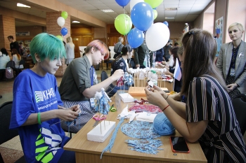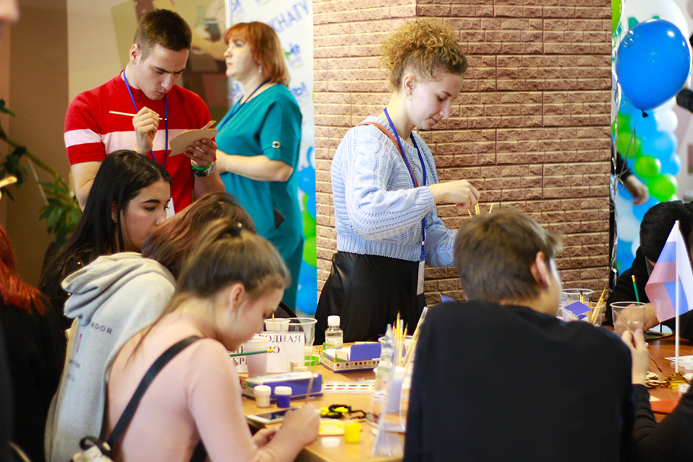 В холле актового зала университета состоялись мастер-классы по национальным ремёслам (изделиям), отражающим культуру русского, таджикского, киргизского, китайского, мьянманского, нанайского и других народов. Здесь участники смогли попробовать разные стили русской росписи по дереву; сшить русскую куклу «Хороводницу» и национальную киргизскую шапку «Колпак»; изготовить мьянманскую матрешку и традиционную нанайскую куклу «Акоан»; сплети фенечки со славянскими узорами и сделать мьянманские бусы; попробовать разные техники и виды оригами. Привлекали внимание мастер-классы по таджикской живописи и китайской каллиграфии, также участники смогли сделать себе значки «Мы вместе» и «Росмолодёжь».