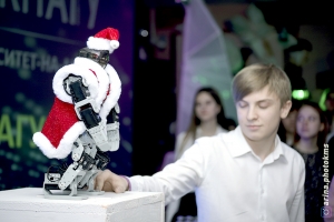Вместе с залом танцевал главный талисман Ректорской ёлки – биолоид РобоМороз, которым управлял одиннадцатиклассник школы № 42 Андрей Клопов, занимающийся в Центре робототехники КнАГУ. Завершением фееричного вечера стал интерактив с флаговым полотном и #ФлешденсРоссия.