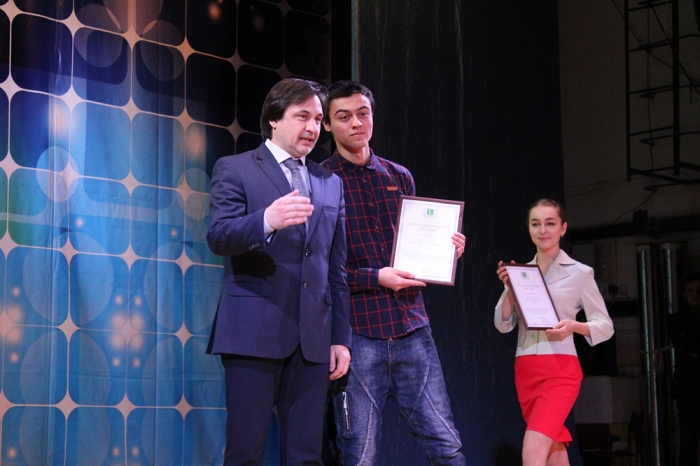 Открыл мероприятие глава города Юности Александр Жорник, который поздравил всех с наступающим Днем российского студенчества, пожелал удачи конкурсантам, затем провел торжественную церемонию награждения студенческой молодежи: благодарность получил волонтер Абдугафор Халимов (студент ССФ) за неоценимую помощь в ликвидации последствий чрезвычайной ситуации, вызванной паводком на территории г. Комсомольска-на-Амуре, и диплом получила Анастасия Улановская (студентка ИКП МТО) за активное участие в развитии молодежной политики в городе.