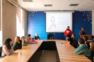 4 февраля 2020 г. в Комсомольском-на-Амуре государственном университете состоялся круглый стол по проблеме распространенности онкологических заболеваний, о мерах по снижению смертности от рака. Модераторами круглого стола стали: ведущий специалист отдела по семейным политике и охране здоровья граждан Ю.В. Ильиных, координатор местного отделения ВОД «Волонтеры-медики» А. В. Калачев, специалист онкологического диспансера г. Комсомольска-на-Амуре О.В. Новосёлова.