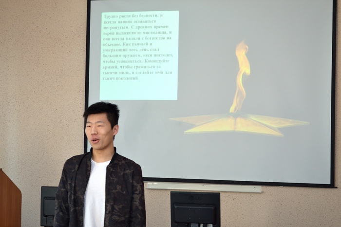 Завершающим мероприятием стал вечер поэзии на родном языке, который был посвящён 75-летию победы в Великой Отечественной войне. В рамках мероприятия студенты из разных стран (России, Китая, Таджикистана, Киргизии) проникновенно прочитали стихи на своём родном языке, которые отозвались в душе каждого присутствующего. Произведения были посвящены подвигам солдат и тружеников тыла, описывали быт и взаимоотношения людей военного времени.
