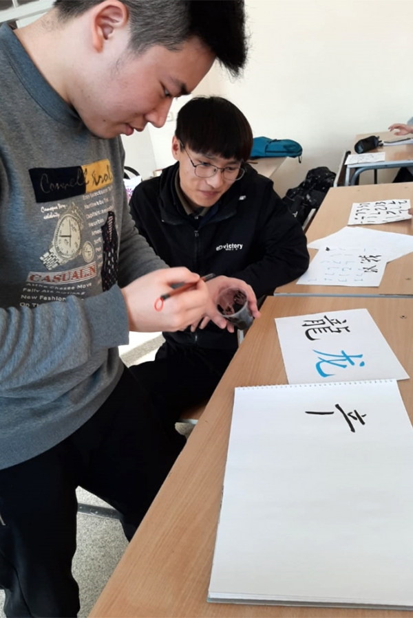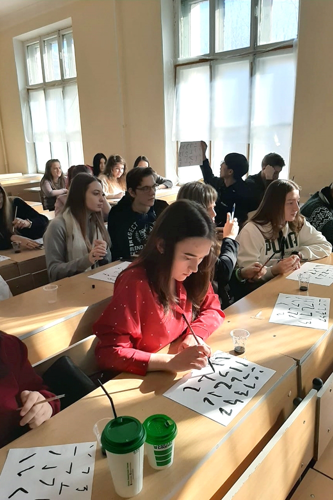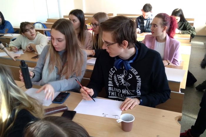Затем прошли мастер-классы по каллиграфии, подготовленные студентами из КНР. Все желающие смогли попробовать свои силы в искусстве каллиграфии.