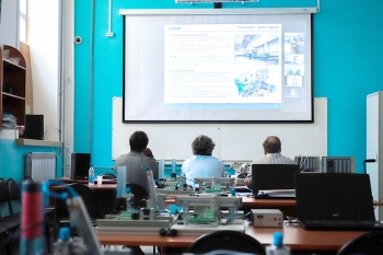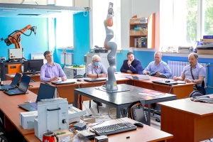Онлайн-защиты ВКР факультета энергетики и управления проходили в Научно-образовательном центре (НОЦ) «Промышленная робототехника и передовые промышленные технологии». Деятельность Центра направлена на решение образовательных и научных задач. На его базе осуществляется подготовка специалистов в области промышленной автоматики и робототехники. Помимо этого, сотрудники НОЦ разрабатывают автоматизированные и роботизированные комплексы для реальных производственных задач.