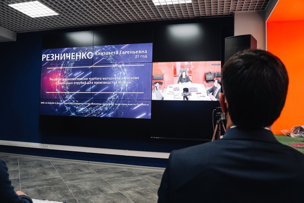 Резниченко Елизавета рассказала о своей инновационной разработке: «На сегодняшний день ведётся разработка экологически чистого биоразлагаемого материала из пшеничных отрубей с добавлением других возобновляемых ресурсов и различных биополимеров. С помощью этой технологии планируется наладить производство и реализацию тарелок, ложек, вилок и других различных комплектующих. Продукт продвигает принципы круговой экономики и повторного использования сырья».