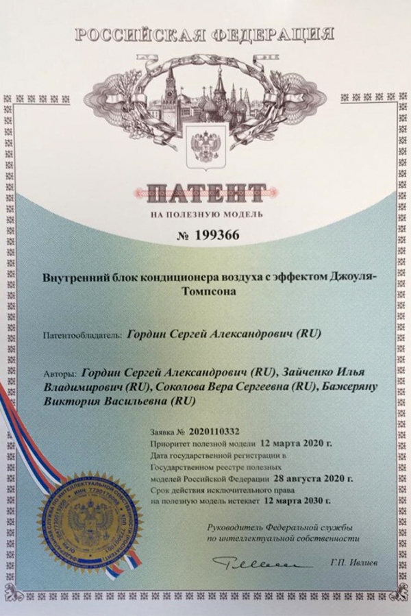 Вера Соколова: Здравствуйте! Наша разработка – это абсорбционный кондиционер. Он не только экономичнее, но и экологичнее представленных на рынке, ведь работает не на электричестве, а на газе. А в будущем мы планируем адаптировать его для работы на аккумулированном солнечном тепле. Уникальной особенностью нашей разработки является решение о совмещении двух принципов – абсорбционного охлаждения и эффекта Джоуля-Томпсона.