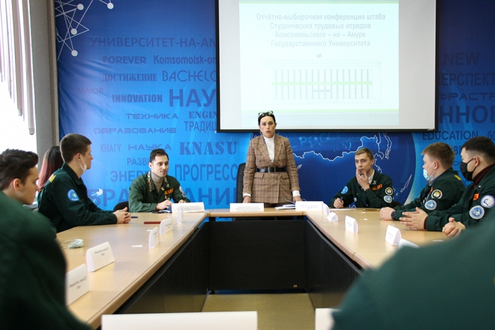 18 февраля 2021 года в Комсомольском-на-Амуре государственном университете состоялись важные события в студенческой жизни университета – Отчётно-выборная конференция Штаба Студенческих Отрядов и праздничный концерт. На конференции присутствовали приглашённые гости: проректор по учебной, воспитательной работе и общим вопросам КнАГУ Т. Е. Наливайко, командир Хабаровского регионального отделения РСО М. В. Чувашов, представители трудовых отрядов КнАГУ: ССО «Медведь», СПО «Парус», СОП «Экспресс», СПуО «Фишка», ССО «Тигры» ГАСКК.