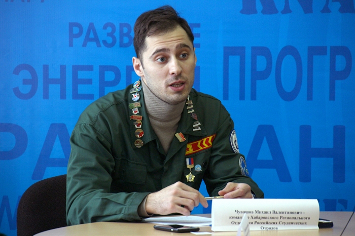 Т. Е. Наливайко, проректор по учебно-воспитательной работе и общим вопросам КнАГУ; М. В. Чувашов, командир Хабаровского регионального отделения МОО РСО; В. В. Саприн, специалист отдела по молодёжной политике администрации Комсомольска-на-Амуре; Алёна Огородник, молодёжный советник при главе города.