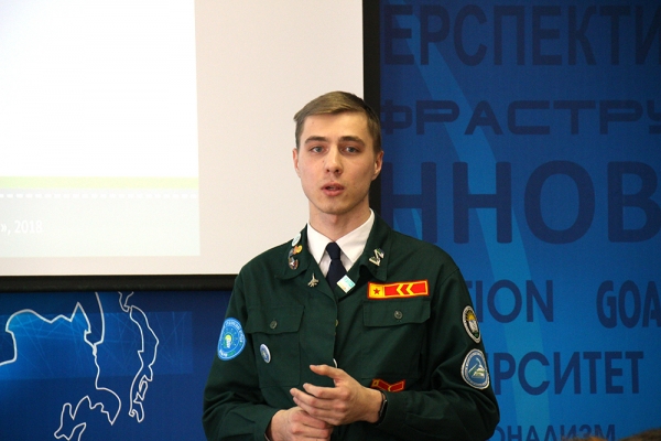 «Самым главным достижением штаба, бесспорно, является реализация грантового проекта от Росмолодёжи «Городская ярмарка вакансий студенческих отрядов “Работаем вместе”», ещё одним значимым достижением для нас стало призовое 2-е место в соревновании Хабаровского регионального отделения РСО «Битва штабов». Третья победа, которая также помогла развить и укрепить отряды – это, разумеется, создание первого студенческого отряда на базе Губернаторского авиастроительного колледжа», – рассказал в своём выступлении командир штаба РСО КнАГУ и ГАСКК Ерофеев Ярослав.