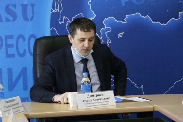 Модератором круглого стола выступил ректор университета Э. А. Дмитриев. В начале рабочей встречи ректор дал общую информацию о сотрудничестве университета с ПАО «АСЗ», рассказал о положительном опыте активной работы в рамках совместной лаборатории композиционных материалов, об активном взаимодействии вуза с предприятием по программе «Судометрика», озвучил статистику трудоустройства выпускников КнАГУ на предприятие. В целях подготовки квалифицированных кадров для предприятия Э. А. Дмитриевым было предложено создать рабочую группу по обеспечению эффективного взаимодействия при решении вопросов сотрудничества «вуз – предприятие».