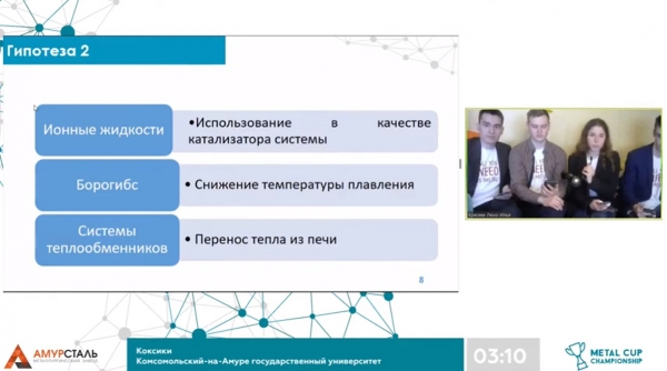 В полуфинале командам предстояло защитить проектные решения в рамках кейса от другого индустриального партнёра – единственного на Дальнем Востоке металлургического завода, производящего сталь с использованием электросталеплавильной технологии с дальнейшим переделом в сортовой прокат – «Амурсталь».
