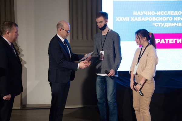 Также для участников фестиваля состоялась стратегическая сессия «Развитие молодёжных студенческих научных сообществ», в которой приняли участие студенты КнАГУ – команда студенческого конструкторского бюро ФЭУ «Электроника и робототехника» (Егор Трегубов, Алексей Чипизубов, Даниил Грабарь, Алевтина Самас) и руководитель СКБ В. В. Солецкий. Участники стратегической сессии представили свои проекты экспертам, получили обратную связь и были награждены дипломами участников.