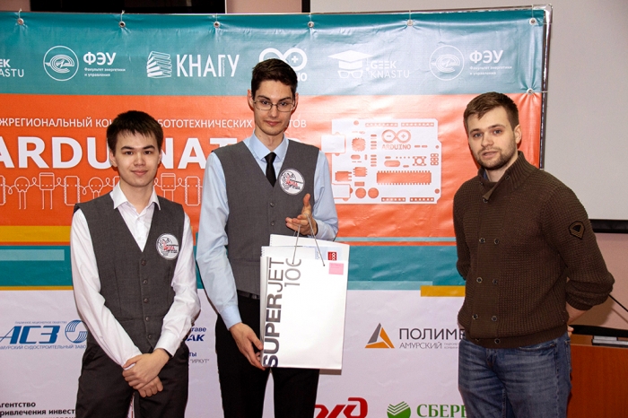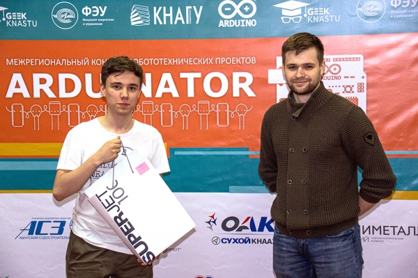 19 мая 2021 года в КнАГУ состоялось торжественное вручение грамот победителям регионального конкурса робототехнических проектов Arduinator-2021. Торжественное награждение среди участников, проживающих в г. Комсомольске-на-Амуре, провел начальник отдела организации проектной работы обучающихся В. В. Солецкий. Дипломы победителей и памятные подарки участникам из других регионов оргкомитет направил по почте.