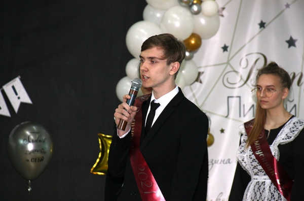 Затем проникновенную речь произнесла директор Лицея В. С. Шилова: «Сегодняшний день очень важен для всех присутствующих. Пусть знания, привитые с любовью учителями Лицея, станут прочной основой для дальнейшего образования, а умения и навыки, полученные в стенах нашего учебного заведения, помогут вам легко адаптироваться ко взрослой и самостоятельной жизни. Вы – молодое поколение, которое приходит на смену нам, и от того, как вы построите свою жизнь, будет зависеть и жизнь всего общества. Мы хотим пожелать вам гладкой жизненной дороги, хороших друзей, удачи и самых лёгких испытаний! От всей души поздравляю вас с окончанием такого важного и сложного учебного года!».