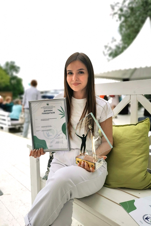 Международный проект «Экологическая культура. Мир и согласие» проводится Неправительственным экологическим фондом имени В. И. Вернадского с 2012 года. В этом году на конкурс было подано более 550 проектов из 62 регионов нашей страны. Победителями стали авторы 26 проектов. Конкурс проходил в шести номинациях, включая две новые номинации: «Устойчивый бизнес» и «Экотуризм». Именно в номинации «Устойчивый бизнес» одним их победителей стал проект «Разработка абсорбционного кондиционера» аспирантки факультета энергетики и управления Веры Соколовой.