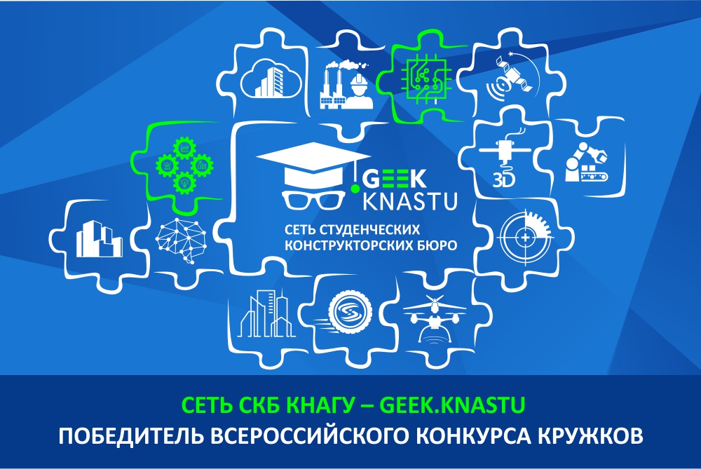 Cеть студенческих конструкторских бюро Geek.Knastu была создана в КнАГУ в 2019 году с целью включения проектной деятельности в образовательный процесс. Все СКБ и СПБ сети ставят перед собой задачу развивать не только практические навыки студентов по их профильным направлениям, но и создавать благоприятные условия для развития их надпрофессиональных навыков, значимость которых растёт на фоне цифровизации и модернизации промышленности, экономики и общества.