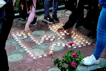 Затем на территории собора Казанской иконы Божьей Матери состоялась молодёжная акция «Нет террору». На мероприятии присутствовали представители администрации города, русской православной церкви, общественных и молодёжных организаций, студенты, школьники, молодёжь города. В рамках акции для всех присутствующих батюшка провёл молитву в память о погибших. Далее студенты Комсомольского-на-Амуре государственного университета совместно с другими участниками молодёжной акции «Нет террору!» сложили слово «МИР» из поминальных свечей в память о тех, кто погиб от рук террористов. Мероприятие нашло отклик в каждом из присутствующих студентов, молодые люди выразили готовность предупреждать любые проявления экстремизма и терроризма.