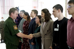С поздравлением к выпускникам военного учебного центра обратилась проректор по учебной, воспитательной работе и общим вопросам Т.Е. Наливайко. Она сердечно поздравила молодых офицеров с присвоением воинских званий «лейтенант» и пожелала им гордо и смело шагать только вперёд, преодолевая все препятствия, сомнения и страхи на пути к новым звёздам на погонах.