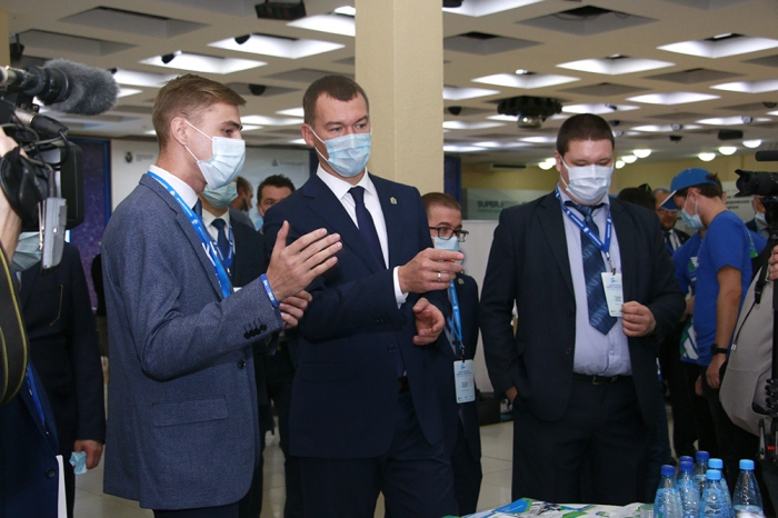 С представленными инновационными разработками КнАГУ познакомился глава региона М. В. Дегтярёв.