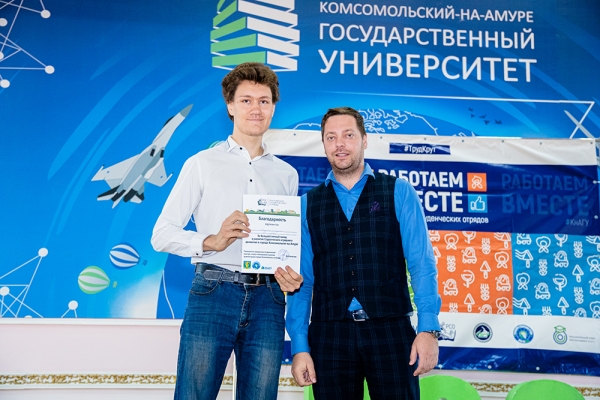 В ходе мероприятия прошло награждение лучших бойцов по итогам летнего трудового семестра. В церемонии награждения принял участие начальник управления по физической культуре, спорту и молодёжной политике администрации Комсомольска-на-Амуре Д. А. Заплутаев: «Я рад видеть, что вы большая дружная семья! Когда выходит боец того или иного студенческого отряда, такая энергетика и мощная поддержка идёт из зала, за это вам огромное спасибо! Вы молодцы, поддерживайте друг друга всегда, двигайтесь вместе! Отмечу, что отрядное движение г. Комсомольска-на-Амуре на сегодняшний день занимает высокое место не только в Хабаровском крае, но и за его пределами – среди других студотрядов! Мы ежегодно предоставляем большое количество бойцов, берём новые объекты и выполняем качественно работу, получая слова благодарности от работодателей! Выражаю слова признательности КнАГУ за поддержку и развитие отрядного движения в своём учреждении!».