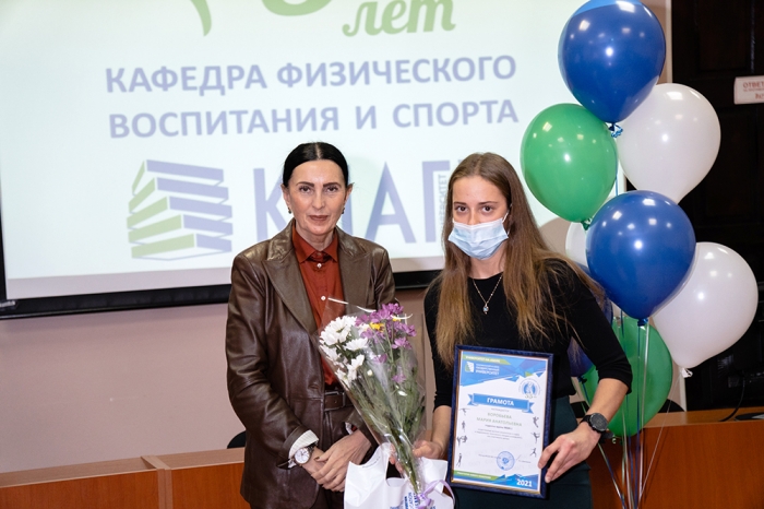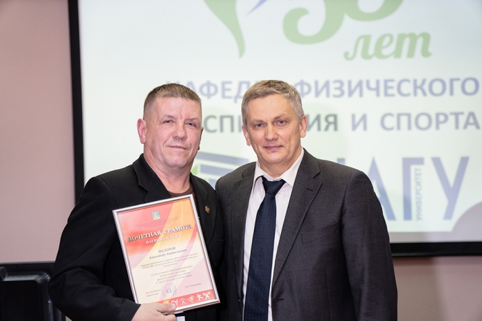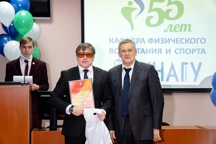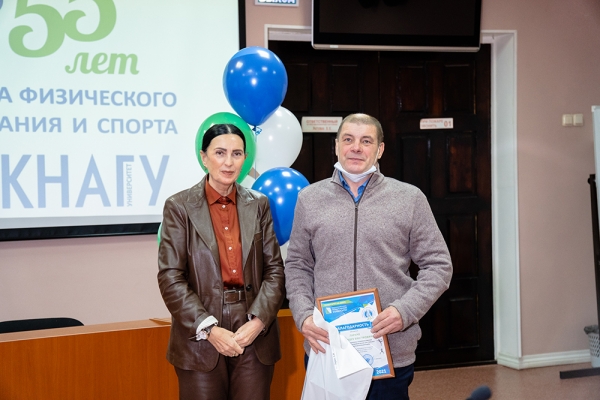 Почётную грамоту университета из рук проректора КнАГУ получили преподаватели и сотрудники кафедры: заслуженный тренер РФ В. К. Стручков, на протяжении многих лет возглавлявший кафедру физического воспитания и спорта и стоящий у истоков её развития, И. М. Ткач, А. М. Заплутаев, Н. К. Дебелая, А. С. Трапезников, А. В. Ларин, М. Д. Конохова; студенты, достигшие высоких показателей в спорте: Алексей Милешин, Мария Воробьева, Николай Таран.