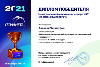 Студент КнАГУ стал призёром международной олимпиады «IT-Планета 2020/21»