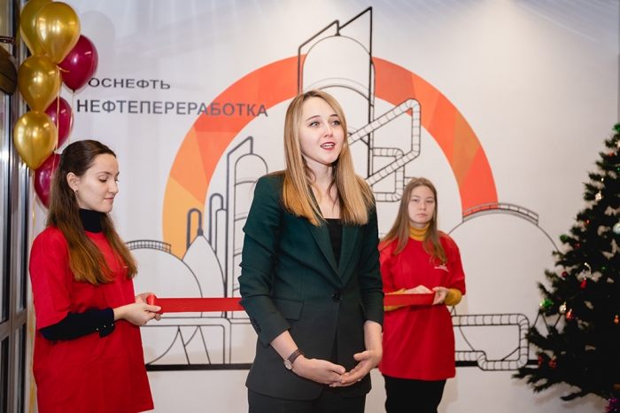 С приветственными словами к присутствующим обратились ректор КнАГУ Э. А. Дмитриев, заместитель генерального директора по персоналу и социальным программам ООО «РН-Комсомольский НПЗ» А. А. Магола, декан факультета машиностроительных и химических технологий П. А. Саблин. Обновлённый холл второго корпуса университета стал лицом факультета машиностроительных и химических технологий, его преображение произведено Комсомольским НПЗ для обеспечения комфортной учебной среды для студентов.