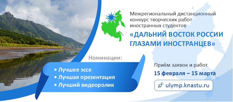 Кафедра лингвистики и межкультурной коммуникации социально-гуманитарного факультета приглашает иностранных студентов очной формы обучения принять участие в межрегиональном дистанционном конкурсе творческих работ «Дальний Восток России глазами иностранцев».