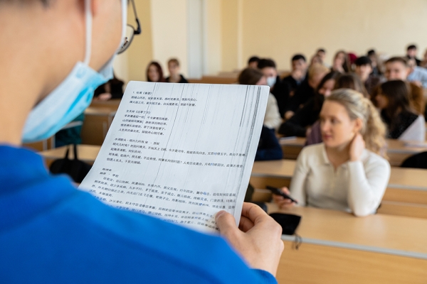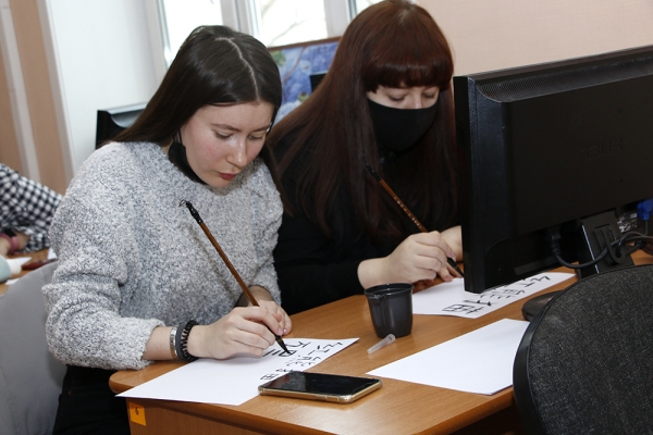 Открыл неделю родного языка мастер-класс по каллиграфии старшего преподавателя кафедры лингвистики и межкультурной коммуникации С. Г. Когая. Китайская каллиграфия – это не только средство общения между людьми, но и средство выражения внутреннего мира человека, а также познания китайской культуры. На мастер-классе у студентов была возможность почувствовать себя настоящим мастером каллиграфии, окунуться в это изящное искусство и попробовать написать иероглифы в традиционном стиле. Интерактивный формат работы позволяет учащимся преодолеть страх перед сложным иероглифическим письмом и получить экспертную помощь от преподавателей.