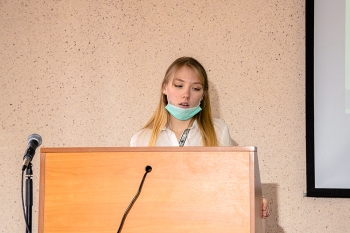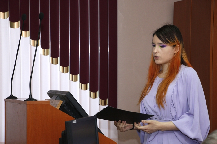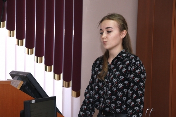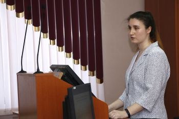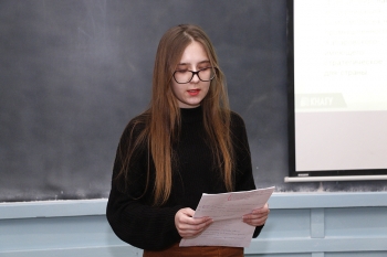 - Мария Ефимова, гр. 1МЛм-1 (СГФ), с научной работой «Реализация речевых стратегий и тактик в текстах экологической тематики в оригинале и переводе» (руководитель – кандидат филологических наук Н. В. Малышева). С помощью выявленных речевых стратегии и тактик, выразительных средств достигается перлокутивный эффект высказываний, тем самым реализуется прагматический аспект.