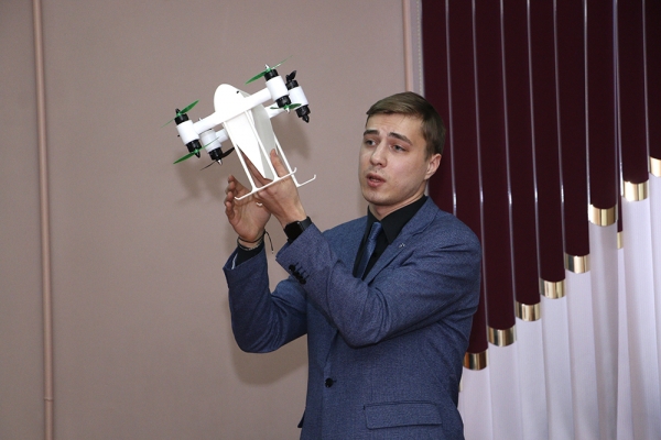 - Ярослав Ерофеев, гр. 7ТС-2 (ФАМТ), с проектом «Разработка грузового беспилотного летательного аппарата вертикального взлёта и посадки» (руководитель – И. В. Лозовский). Данный БПЛА найдёт свой спрос среди частных компаний, заинтересованных в использовании технологий БПЛА, а также в различных государственных компаниях и структурах.