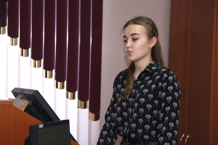 - Елена Бабинова, гр. 0МДб-1 (ФЭУ), с работой «Концепция развития молодёжного предпринимательства в высшем учебном заведении» (руководитель – кандидат экономических наук И. Г. Усанов). Проведён анализ механизмов вовлечения молодёжи в предпринимательскую деятельность.