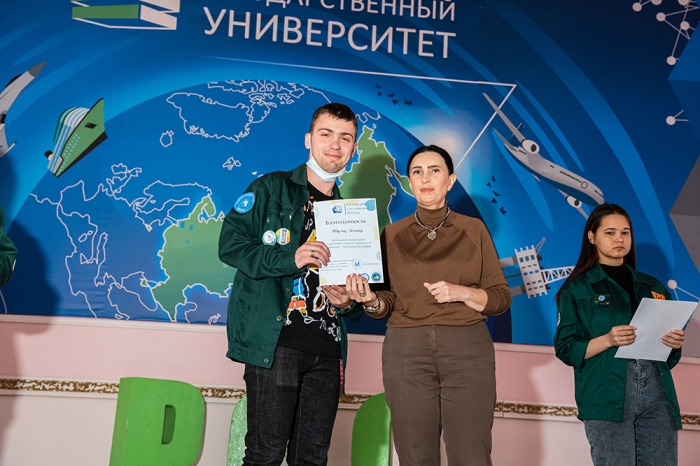 В начале мероприятия всех поприветствовала проектор по учебной, воспитательной работе и общим вопросам Т. Е. Наливайко: «КнАГУ открыл свои двери для вас! Молодёжь полна задорного смеха и желания трудиться. Летом ваша работа будет актуальна и востребована как на территории Хабаровского края, так и за его пределами. Сейчас очень важно, чтобы ваша молодёжная энергия шла в позитивное и конструктивное русло. Труд по-прежнему крут! С праздником вас, с 63-летней годовщиной РСО!».