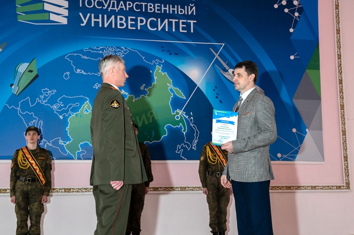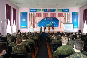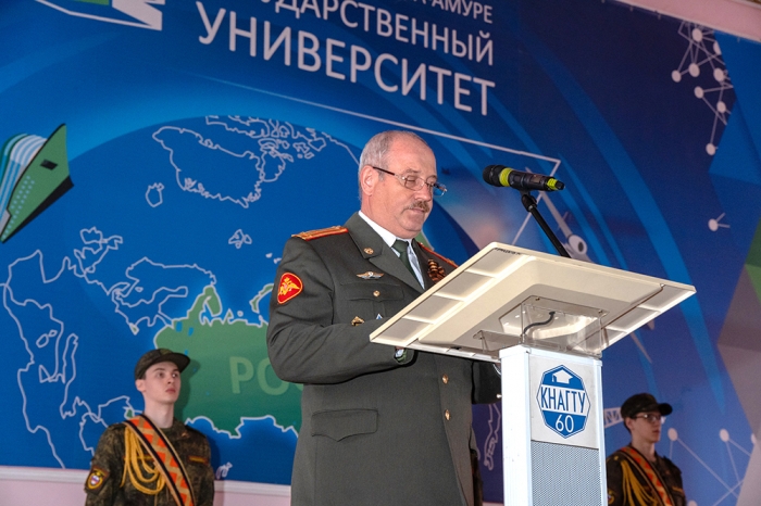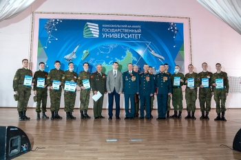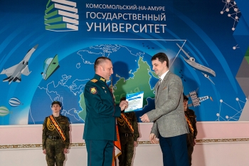В преддверии великого праздника Дня Победы в Комсомольском-на-Амуре государственном университете состоялось торжественное собрание, посвящённое 77-й годовщине Победы советского народа в Великой Отечественной войне 1941–1945 годов. В мероприятии приняли участие офицеры и курсанты Военного учебного центра, преподаватели, сотрудники и студенты вуза. Почётными гостями собрания стали преподаватели Военного учебного центра – участники боевых действий: подполковники В. В. Тараненко, В. А. Решетник, В. А. Кучаев. Мероприятие было организовано Военным учебным центром и отделом организации воспитательной работы университета.