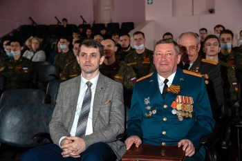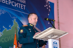 К словам поздравления присоединился начальник Военного учебного центра, кандидат исторических наук, доцент, полковник запаса С. И. Карпов: