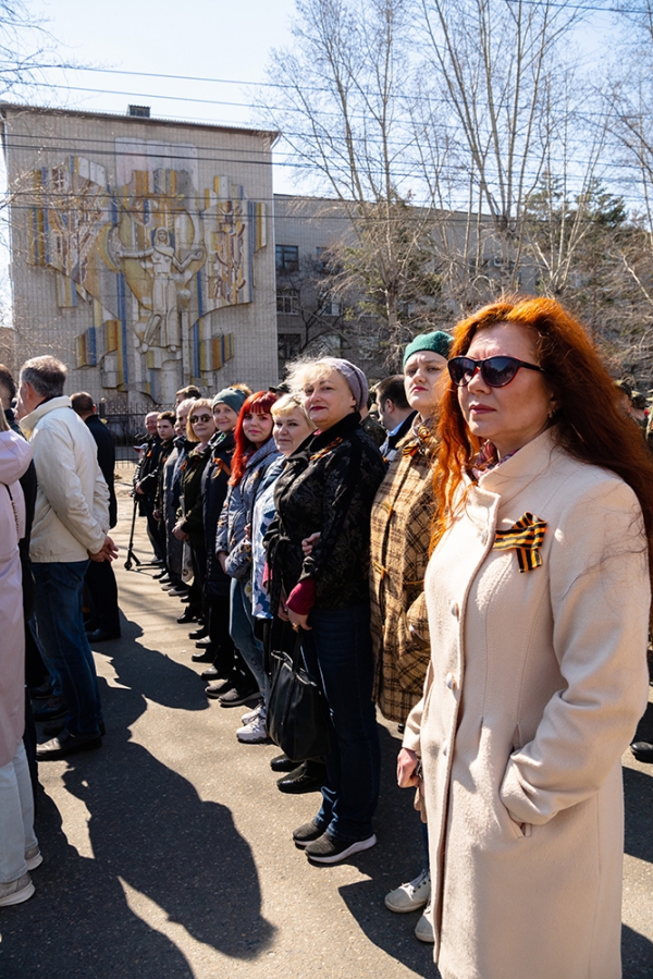 09 мая 2022 года студенты, преподаватели и сотрудники Комсомольского-на-Амуре государственного университета приняли участие в Марше памяти и шествии «Бессмертный полк». Колонна от нашего университета вместе с остальными участниками мероприятия прошла по пр. Ленина, далее по пр. Мира, ул. Дзержинского до Мемориального комплекса «Землякам-комсомольчанам, павшим в боях за Родину в суровые годы Великой Отечественной войны». Каждый из участников шествия получил георгиевскую ленточку в знак памяти о героях Великой Отечественной войны. Участие наших студентов в Марше памяти организовано отделом организации воспитательной работы и военным учебным центром КнАГУ.