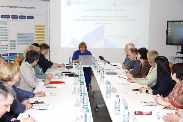 Представители Комсомольского-на-Амуре государственного университета приняли участие в работе заседания рабочей группы учебно-производственного кластера «Авиастроение, промышленность и инженерные технологии». Заседание прошло под председательством министра образования и науки Хабаровского края В. Г. Хлебниковой на базе Губернаторского авиастроительного колледжа. В мероприятии также приняли участие представители органов исполнительной власти, образовательных организаций высшего, среднего профессионального, общего, дополнительного образования, авиастроительных заводов г. Комсомольска-на-Амуре.