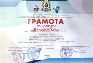 25-26 июня 2022 г. в г. Хабаровске прошли финальные соревнования 28-го физкультурно-спортивного фестиваля «Азарт. Здоровье. Отдых» среди команд Союза «Хабаровское краевое объединение организаций профсоюзов». В составе команды профсоюза работников народного образования и науки приняли участие команды Комсомольского-на-Амуре государственного университета.