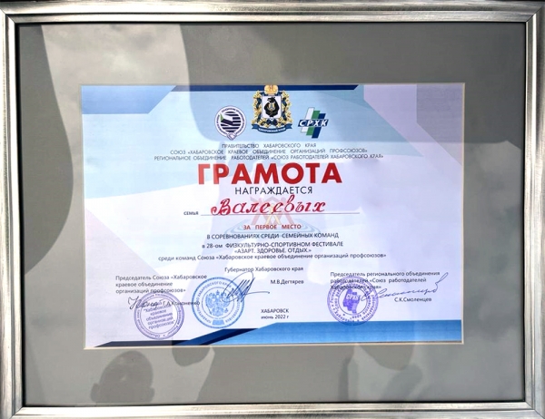 В соревнованиях спортивных семей университет представляла семья зав. кафедрой «Физическое воспитание и спорт» А. М. Валеева, которая завоевала 1-е место и получила главный приз губернатора Хабаровского края – автомобиль.