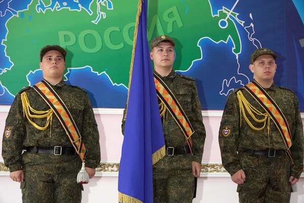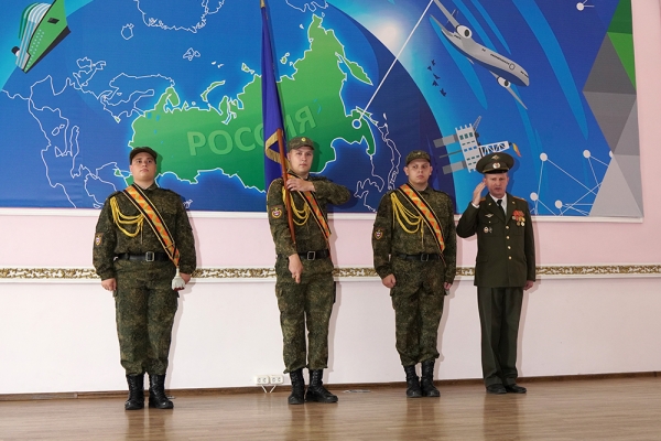 Мероприятие началось с традиционного выноса флага-штандарта университета и исполнения Государственного гимна Российской Федерации.