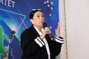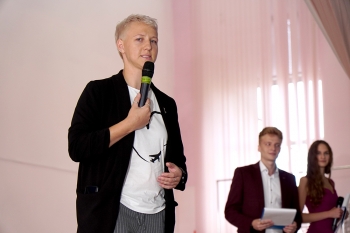 Далее с новым этапом жизни поздравила первокурсников проректор по воспитательной работе и работе с молодежью Т. Е. Наливайко: «Мы очень рады видеть полный актовый зал активных молодых людей. Хотелось сказать, что из стен этого университета в разные годы выходили люди, компетенций которых было достаточно, чтобы стать губернаторами, руководителями крупных производств, главами городов, депутатами... И наши сегодняшние студенты тому яркий пример: они участвуют в конкурсах и молодежных форумах, которые проходят по всей стране, получают финансовую государственную поддержку своим проектам и воплощают их в жизнь. Поэтому дерзайте, не откладывайте на завтра то, что можно сделать сейчас! Только вперёд, вместе с КнАГУ!». Кроме того, проректор рассказала об медийной активности университета, факультетов и студенческих объединений в социальных сетях, подчеркнула важность коммуникации в общем информационном поле.