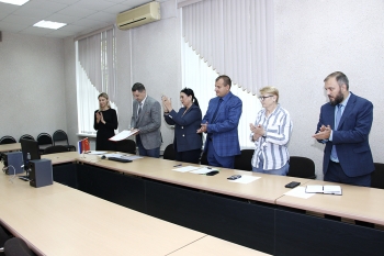На деловой встрече присутствовали: ректор университета Э. А. Дмитриев, проректор по воспитательной работе и работе с молодёжью Т. Е. Наливайко, проректор по учебной работе Я. Ю. Григорьев, декан факультета энергетики и управления А. С. Гудим, декан факультета кадастра и строительства Н. В. Гринкруг, и. о. начальника международного отдела Е. С. Шумайлова.