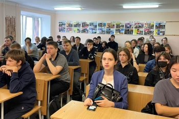 Далее заведующая кафедрой «Общеобразовательные дисциплины» Е. А. Малых рассказала студентам о выдающемся российском учёном К. Э. Циолковском как примере развития и самореализации человека, стремящегося к претворению в жизнь своей мечты во имя блага страны и последующих поколений, о его вкладе в развитие отечественной и мировой космонавтики. В конце разговора студенты поучаствовали в викторине, которая окунула ребят в атмосферу космоса.