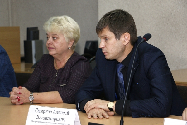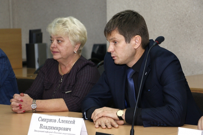 На деловой встрече присутствовали: и. о. ректора университета Т. Е. Наливайко, проректор по учебной работе Я. Ю. Григорьев, декан факультета авиационной и морской техники О. А. Красильникова, зав. кафедрой «Тепловые энергетические установки» А. В. Смирнов, зав. кафедрой «Кораблестроение и компьютерный инжиниринг» В. В. Куриный.