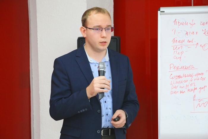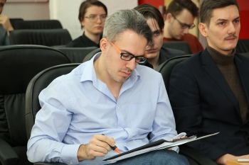 В начале мероприятия с приветственным словом к участникам и представителям жюри обратился председатель экспертной комиссии, доцент кафедры «Управление инновационными процессами и проектами» Зайченко Илья Владимирович. Он поприветствовал всех присутствующих, пожелал участникам хорошо выступить и пройти в финал конкурса.