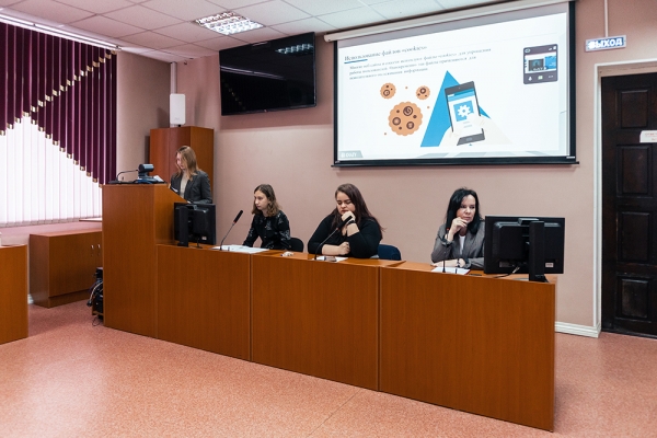 В дальнейшем слово передали участникам из Поволжского института управления имени П. А. Столыпина РАНХиГС при Президенте РФ Меньковой Анастасии Михайловне и Войтус Антону Михайловичу, которые выступили с докладом об анализе факторов, влияющих на конфиденциальность в социальных сетях.